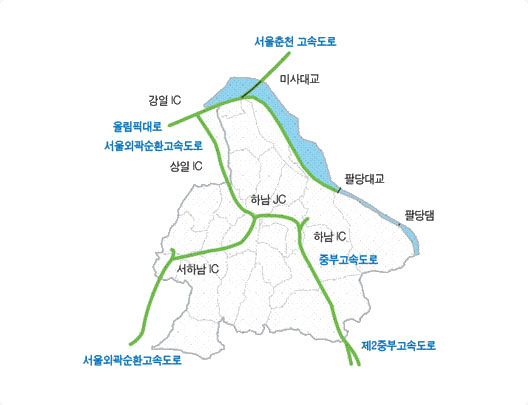 하남시는 성남시와 함께 도로를 통한 서울 접근성이 가장 좋은 경기도 지역이다.